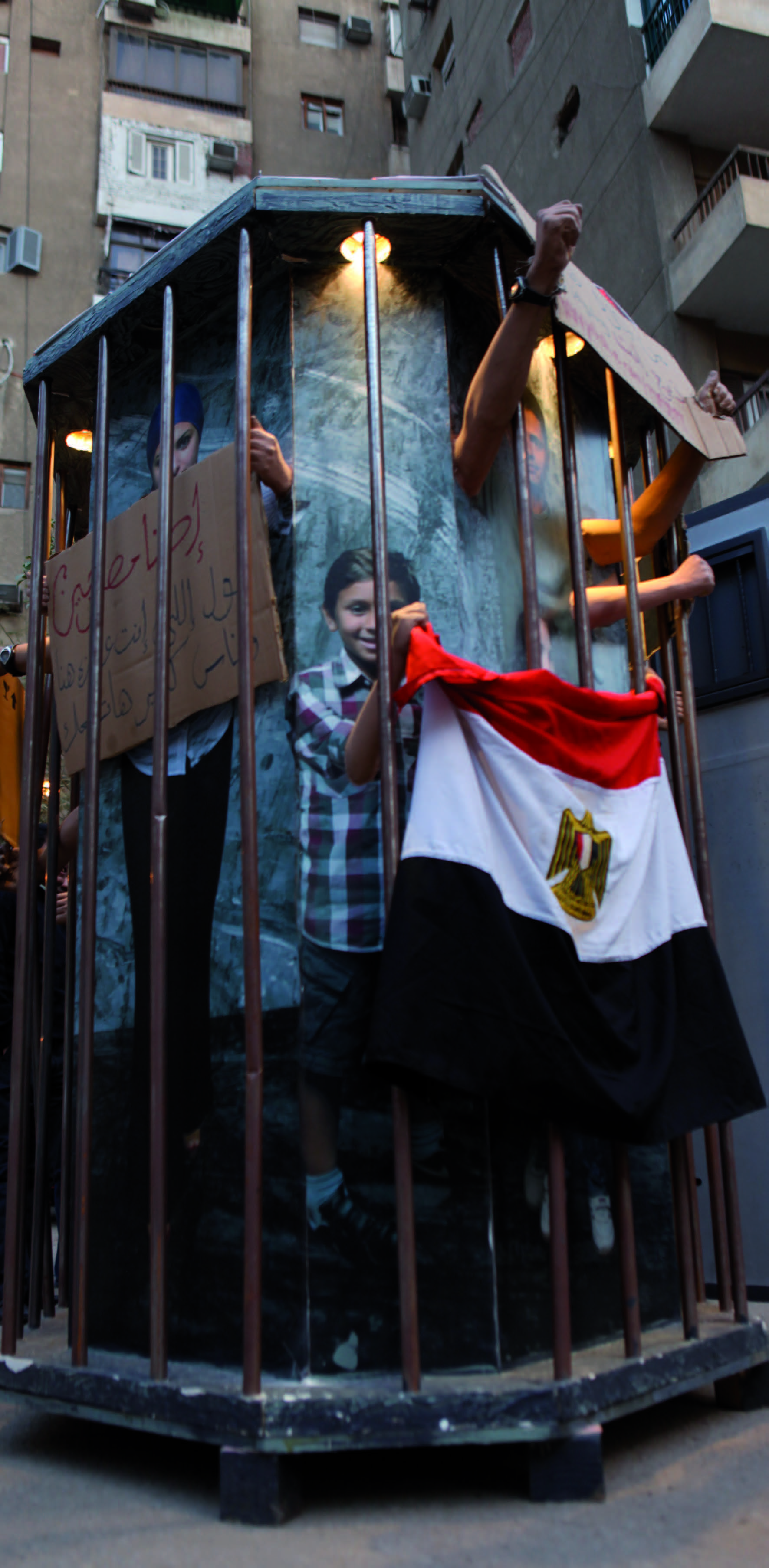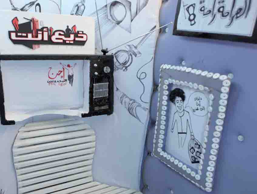 In ‘Zee3 Enta’, all social classes are meant to express themselves, all religions, all genders as well as all talents. As you can see, our booth looks a bit weird. It’s supposed to look like a jail where people could overcome the bars and learn to speak out. Concerning its size, it was the founders intention to build it as small as it is, so it would be easy to move around the country.