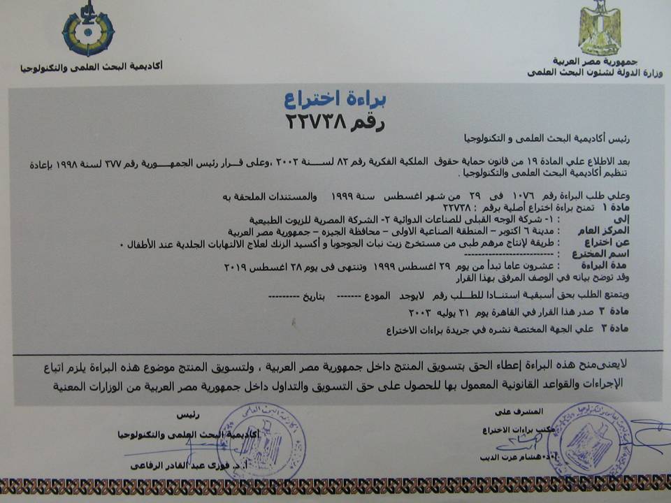 Eng. Mogy was able, in collaboration with a pharmaceutical company, to produce 3 medicines and register them in the Ministry of Health. He obtained three patents registered in the USA.